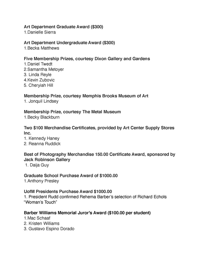 Topic: Rehema barber Juror Lecture 38th Annual Juried Student Exhibition with awards