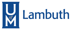 For the preferred UofM Lambuth logo, the Pillar mark and UofM Wordmark are used, with Lambuth underneath. But for this case only, the word "Lambuth" is increased in size, to give the word more prominence.