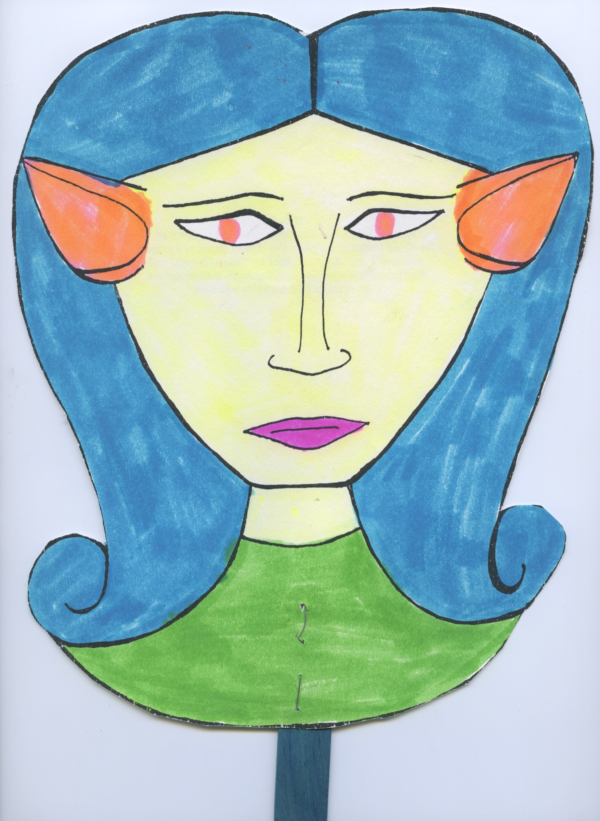 After coloring the mask, cut around the edges and cut out the eye holes, though leave some space to punch holes near the ears where you can tie a string so you can wear your mask. Or you can staple a popsicle stick to the bottom of the mask to hold it up in front of your face.