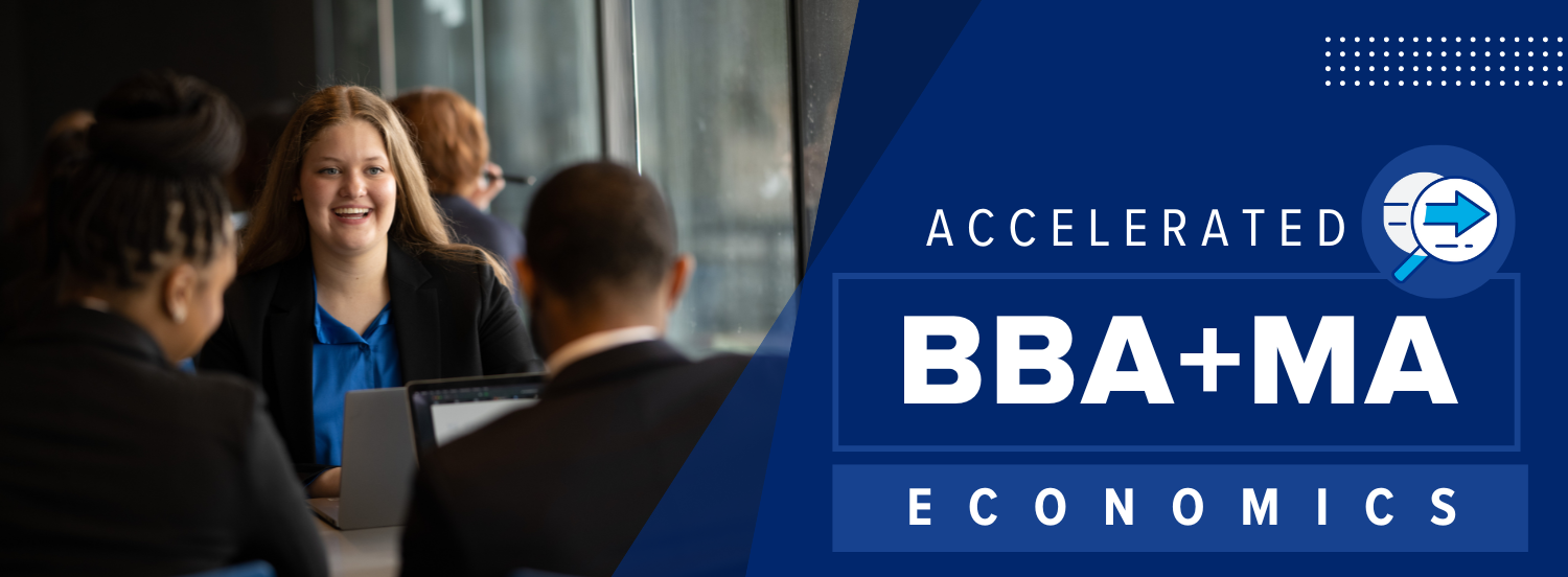 This program allows outstanding undergraduates to begin the coursework for the Master of Arts in Economics during their senior year. Students are encouraged to begin planning to enter the Accelerated BBA+MA program early in their undergraduate career, in consultation with their undergraduate academic advisor in the Department of Economics.