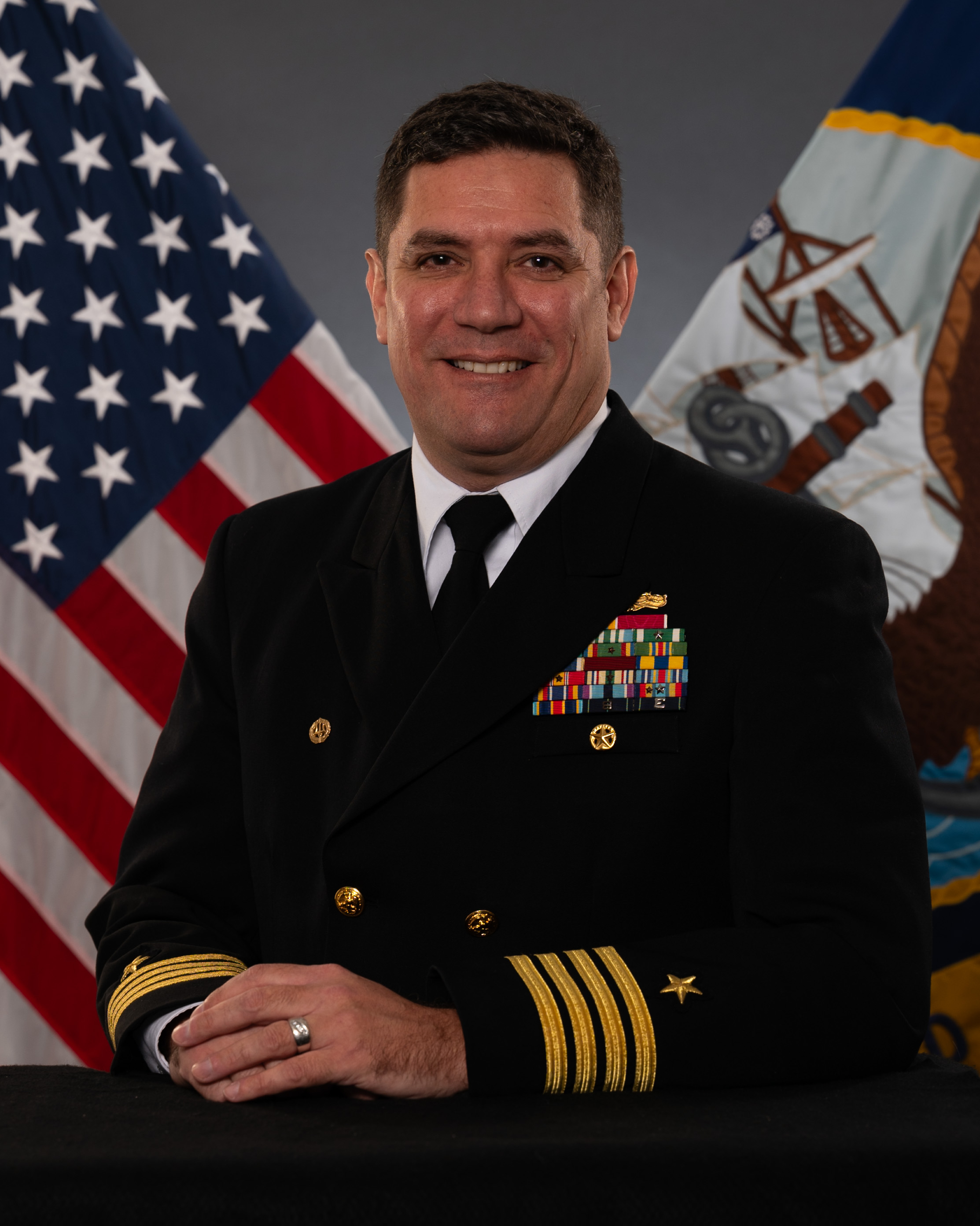 A Pico Rivera, CA native, CAPT Chris Brusca enlisted in the Navy after high school in 1993 as an Operations Specialist. While serving aboard USS Vandergrift (FFG 48), he was accepted into the Broadened Opportunity for Officer Selection and Training (BOOST) Program. He graduated from the University of San Diego in 2000 with a Bachelor of Arts in International Relations. In 2006, he earned a Master of Science in Global Leadership from the University of San Diego School of Business.