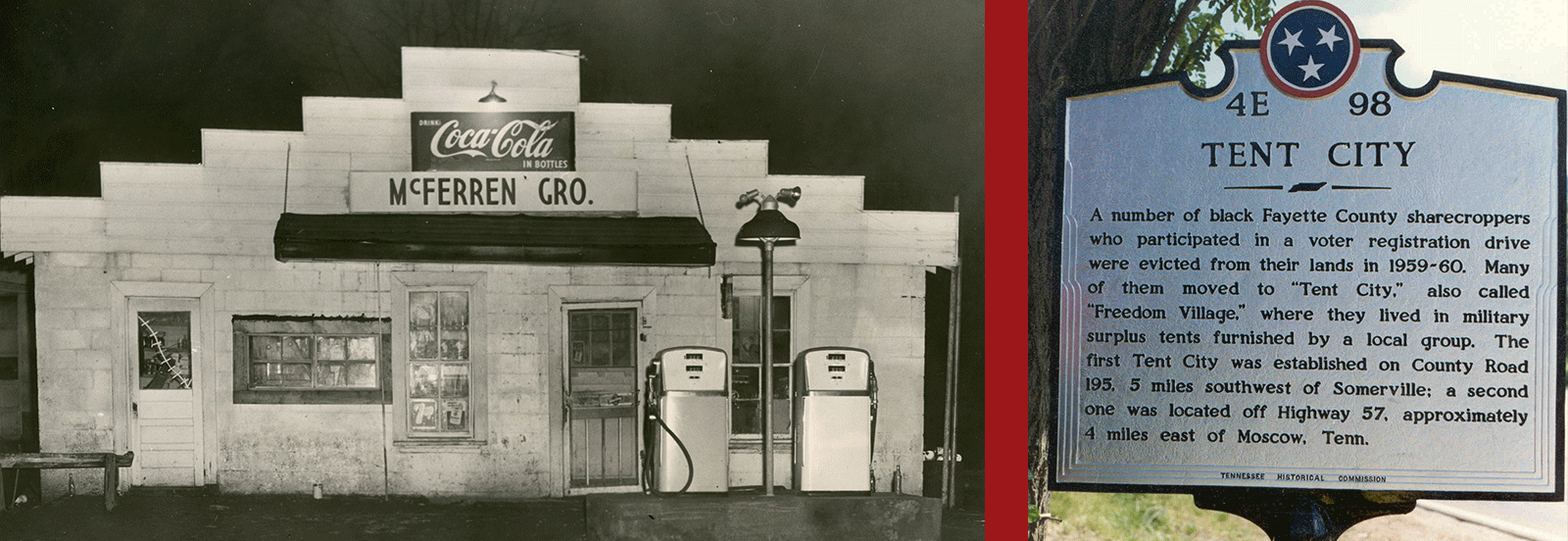 The website we have chosen to call "Tent City" covers the series of civil rights events that took place in Fayette County, Tennessee from 1959 into the early 1970s. One of those major efforts—registering black residents to vote—led to what was called Tent City. As a result of registering to vote, many black residents were evicted from the sharecropper housing that had been home to some families for generations. Ultimately, several hundred people had to move into one of two Tent Cities erected on donated land—some living there for more than 2 years. In addition, black residents who registered to vote were blacklisted by whites from purchasing goods and services necessary to survive day to day, such as milk, eggs, fuel, and even medical care.